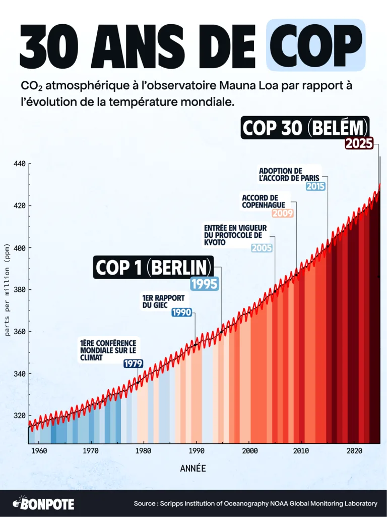 Face au réchauffement climatique, les représentants de près de 160 pays se réunissent pour la 30e conférence de l’ONU sur le climat (COP30) à Belém, au Brésil, du 10 au 21 novembre 2025. Dates clés, participants, résultats attendus… Tour d’horizon des enjeux par Camille Richir sur La Croix.