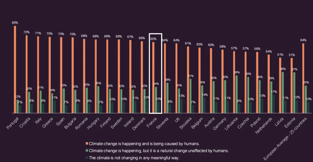 65% des Français considèrent que le changement climatique est une réalité et qu’il est causé par l’activité humaine