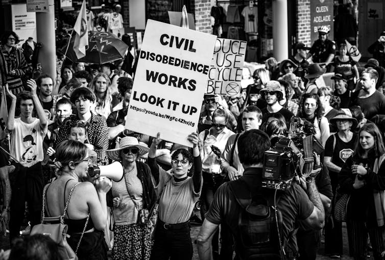Mais à l’heure où les effets du dérèglement climatiques sont de plus en plus tangibles, et où l’inaction des gouvernants est de plus en plus pointée du doigt, en quoi la désobéissance civile peut-elle ou non permettre de mobiliser en faveur du climat ? Sous fond de crise sociale et démocratique, avec une abstention croissante et des institutions malmenées, on voit les militants climatiques interpeller via divers biais les pouvoirs étatiques.