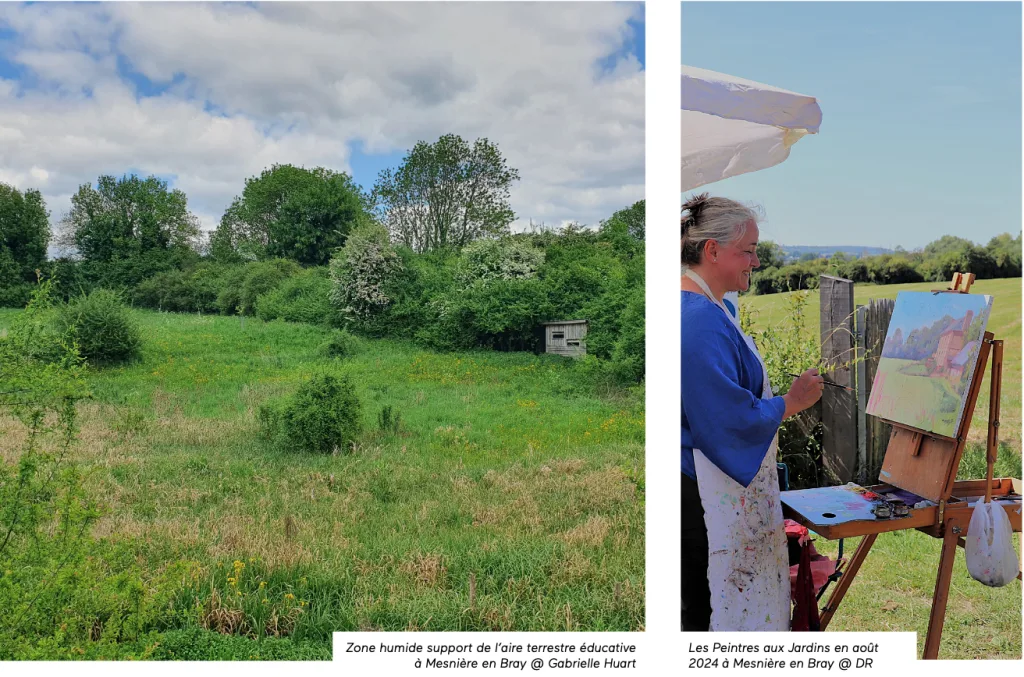 Mesnières-en-Bray développe une approche originale du lien entre culture et nature, en mobilisant l’art comme vecteur d’éducation et de convivialité. Résidences d’artistes, ateliers de peinture en nature, expositions photographiques en plein air et événements participatifs (La Grande Lessive, Mesnières fête l’automne) permettent aux habitants de s’approprier leur patrimoine naturel de manière créative et inclusive.