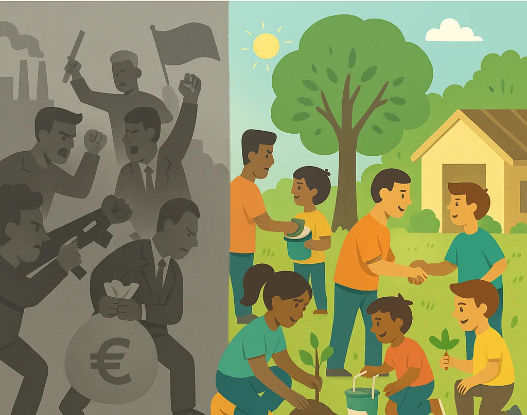 Un monde sans argent permet une organisation de société harmonieuse, équilibrée, soudée et collaborative. En plus, il n’engendre pas d’arnaques, de trafics mafieux, de marchés nuisibles.