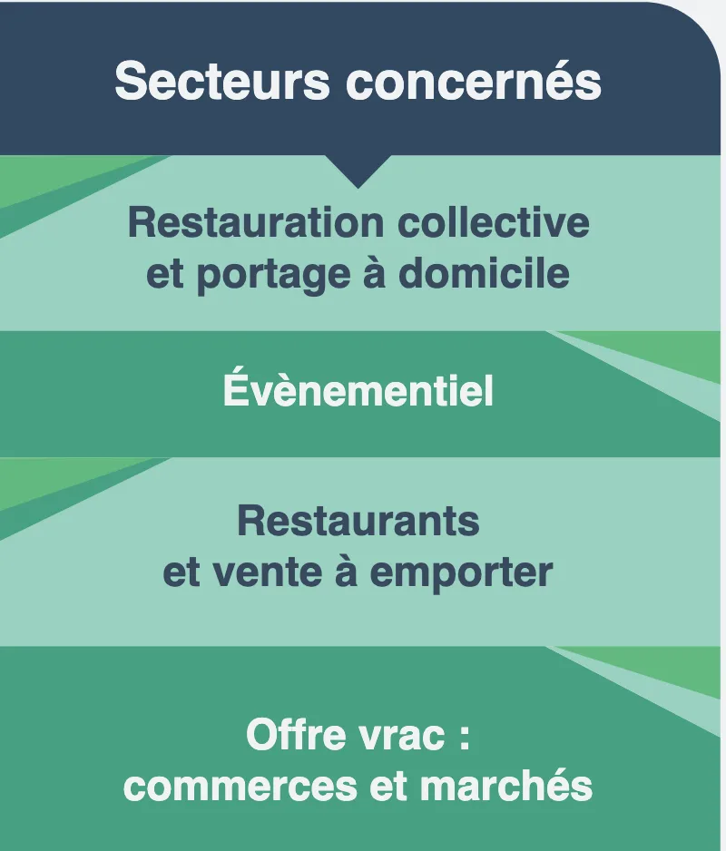 - Agir sur la restauration collective (école, repas à domicile, …) en priorisant les fournisseurs et prestataires qui proposent des solutions réemployables ou vrac (bac gastro, vaisselle, …)