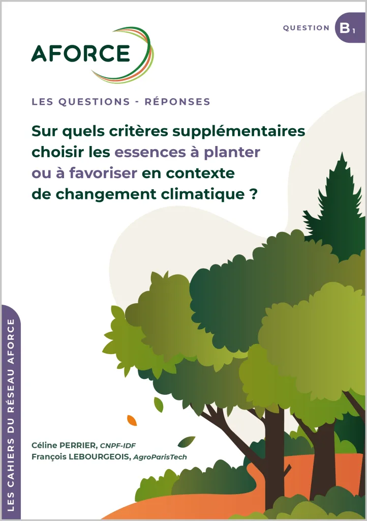 Réalisée sous la coordination de Céline Perrier (CNPF-IDF), avec l’appui d’un groupe de travail réunissant des acteurs issus de plusieurs organismes et aux missions variées, la Collection de cahiers « Les Questions-Réponses » d’AFORCE est centrée sur l’adaptation des forêts au changement climatique. Chacun des cahiers de cette collection s’appuie sur les éléments de connaissance et le savoir-faire accumulés du réseau AFORCE et sur une synthèse de documents sélectionnés dans la littérature scientifique et technique. Les questions traitées sont regroupées par thématiques.