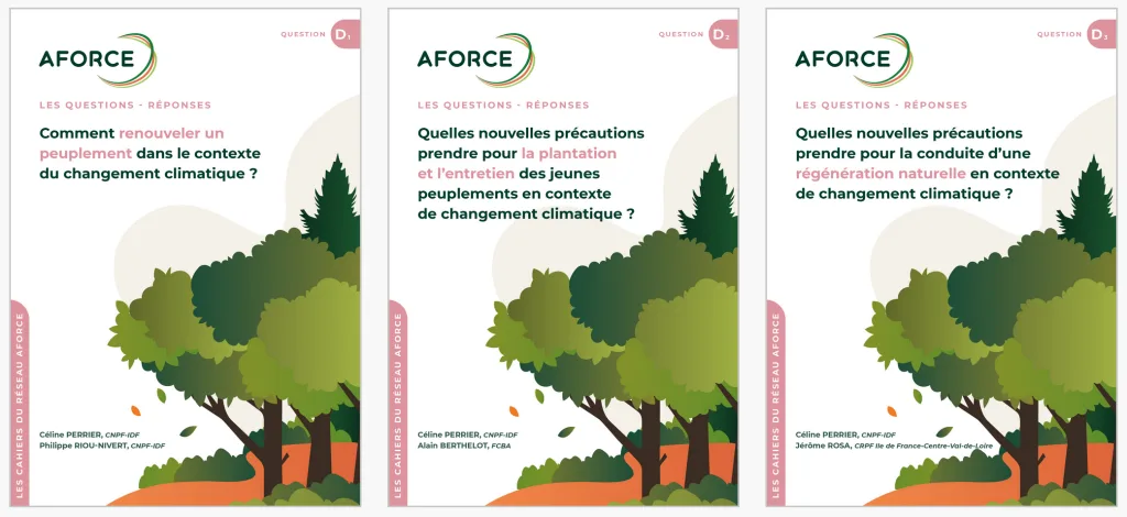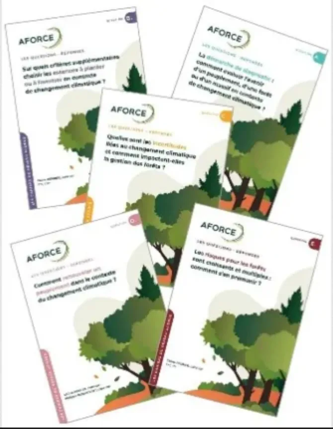 Le changement climatique amène les forestiers à s’interroger sur les effets des évolutions annoncées sur les arbres et les forêts. Ils se questionnent sur l’attitude à adopter face aux incertitudes ainsi que sur les choix opérationnels à mettre en œuvre. Ils expriment également des préoccupations quant aux effets potentiels de pratiques qui s’écarteraient des cadres d’intervention de référence. Au fil des années, le réseau AFORCE a recueilli toutes ces interrogations et propose des éléments de réponse dans une Collection de cahiers « Les Questions-Réponses ».