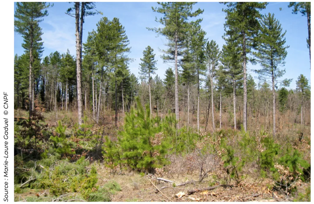 L’objectif de l’opération sylvicole est de favoriser la fructification, la germination des graines puis la croissance des semis. Ce processus peut également être déclenché par un aléa générant des ouvertures (mortalité diffuse, chablis, incendie).