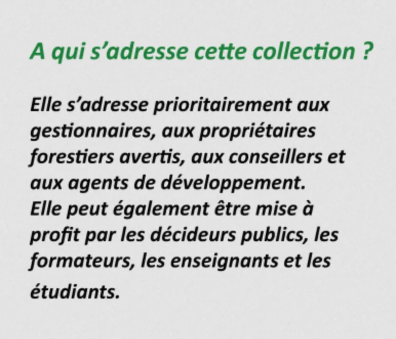 Les réponses apportées visent à aider le raisonnement du forestier et à soutenir ses décisions pratiques : comprendre l’enjeu, effectuer un bon diagnostic, utiliser les outils appropriés et identifier un panel d’options alternatives.