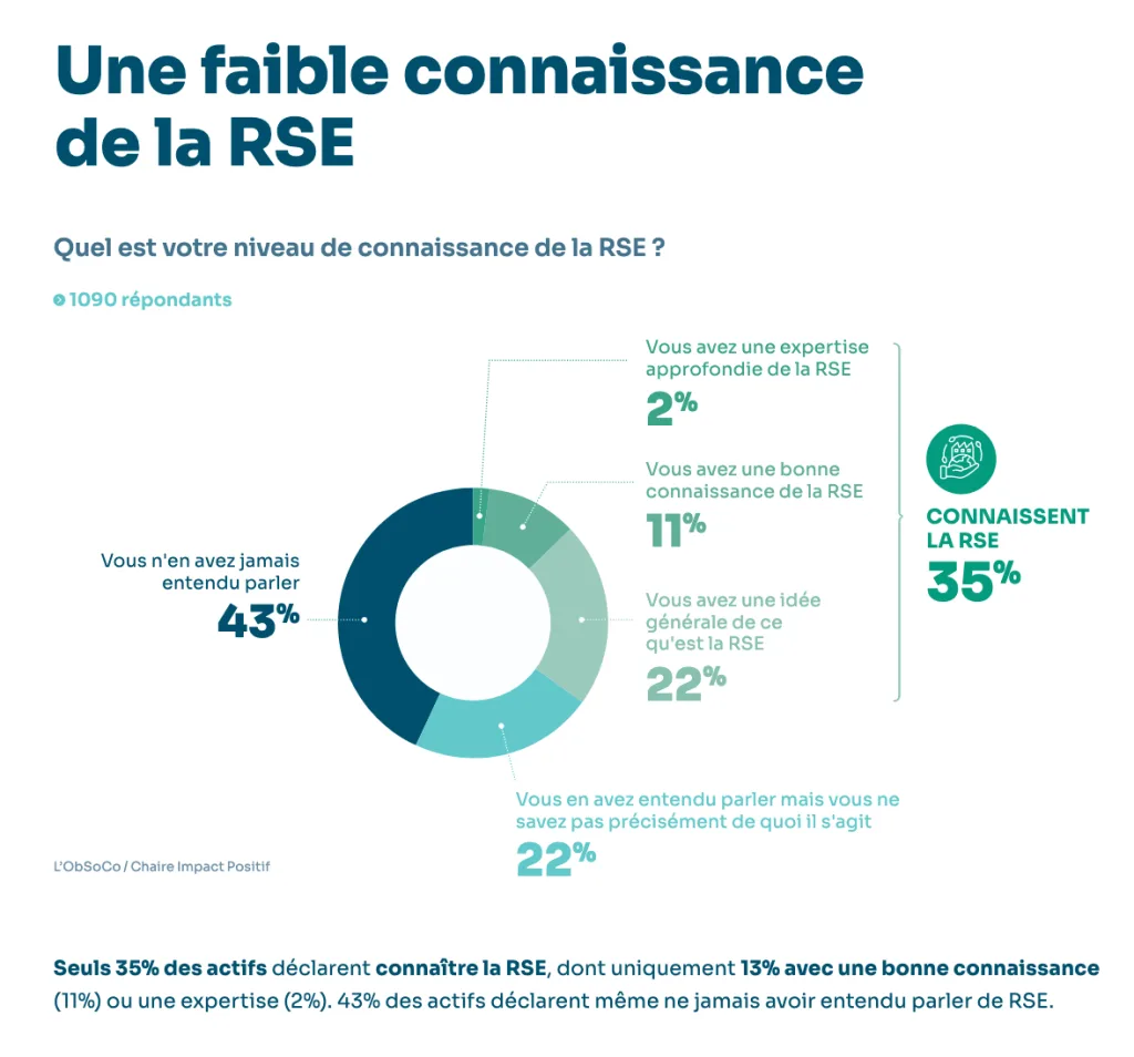 • 43 % des actifs déclarent n’avoir jamais entendu parler de la RSE