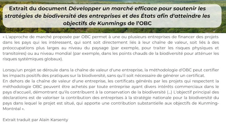 La publication, à l’occasion de la COP16, de deux documents proposant des feuilles de route qui pourraient guider de futurs marchés volontaires de crédits ou de certificats biodiversité, est l’occasion d’y voir un peu plus clair. Le premier provient de L’IAPB (International Advisory Panel on Biodiversity Credits) né d’une initiative franco-britannique lancée en 2023 et co-présidée par l’ancienne haute fonctionnaire et femme politique Sylvie Goulard et la femme d’affaires Dame Amelia Fawcett. L’OBC (Organization for Biodiversity Certificate) est une initiative française lancée par aDryada et Le Printemps des Terres, soutenue par Carbone 4 et le MHHN.