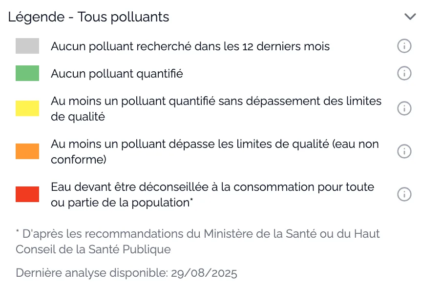 - S’informer sur la qualité de l’eau locale via des outils de surveillance mis à disposition par les ARS (Agences Régionales de Santé) et les associations de consommateurs ;