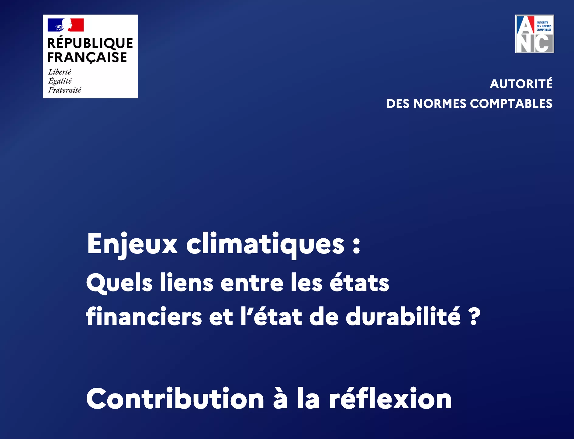 Cette contribution est pédagogique et ne présente pas de caractère normatif. Elle a été préparée par un groupe de travail de l’ANC, rassemblant des experts du reporting financier, du reporting de durabilité et des enjeux climatiques.