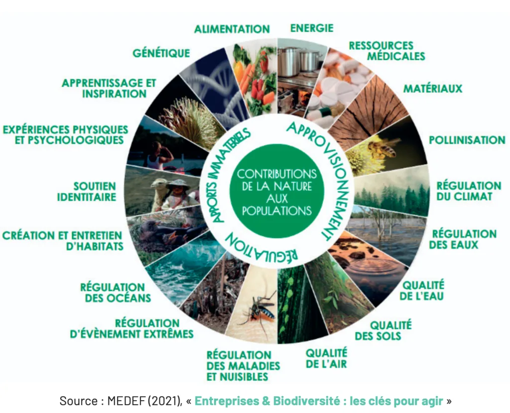 « Si la dépendance de notre économie à la biodiversité et aux services qu’elle rend ne fait désormais plus de doute, elle demeure encore trop souvent méconnue ou sous-estimée. Pourtant, cette dépendance est bien réelle : fertilité des sols, pollinisation, régulation du climat, approvisionnement en eau et en matières premières, protection contre certains risques naturels comme les inondations. Autant de fonctions essentielles qui soutiennent directement ou indirectement l’activité économique.