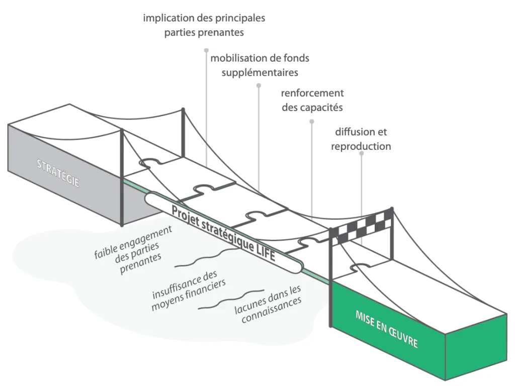 Ils recommandent également d’impliquer activement les organismes chargés de mettre en œuvre les stratégies sous-jacentes (à savoir les plans, stratégies et cadres d’action que soutiennent les projets stratégiques LIFE) afin de garantir que les projets continuent à produire des résultats au-delà de la période de financement.