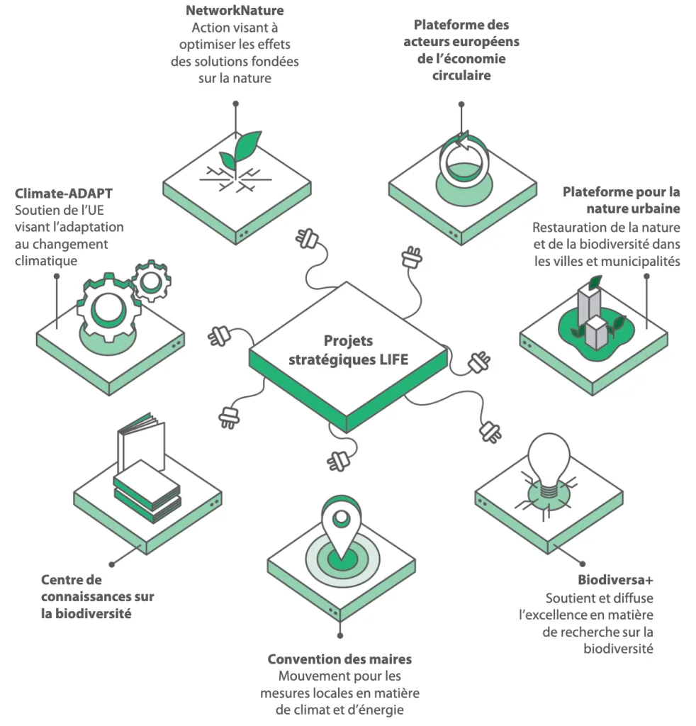 Au total, 701 millions d’euros ont été versés à 70 projets stratégiques au titre du programme LIFE sur le budget 2014‑2020 (soit entre 7 et 16 millions d’euros chacun). Depuis 2021 et jusqu’à avril 2025, 436 millions d’euros ont été alloués à 25 autres projets (soit entre 10 et 30 millions d’euros par projet).