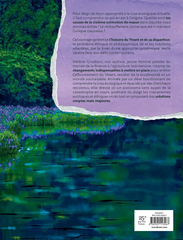Hélène Grosbois, son autrice, jeune femme passée du monde de la finance à l’agriculture biointensive, incarne les changements indispensables à mettre en place pour arrêter l’effondrement du Vivant, recréer de la biodiversité et un monde souhaitable. Animée par un désir bouillonnant de comprendre la crise écologique et épaulée par des chercheurs reconnus, elle dresse ici un panorama sans appel de la catastrophe en cours, pointant du doigt les mécanismes politiques et éthiques viciés tout en proposant des solutions simples mais majeures.