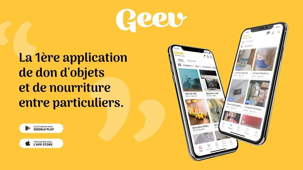 Geev est la 1ère application de don d’objets entre particuliers en France. Parce qu’on a tous une bonne raison de donner, Geev rend le don accessible à tous, partout et tout le temps. Grâce à la géolocalisation, les utilisateurs peuvent trouver les dons les plus proches de chez eux.