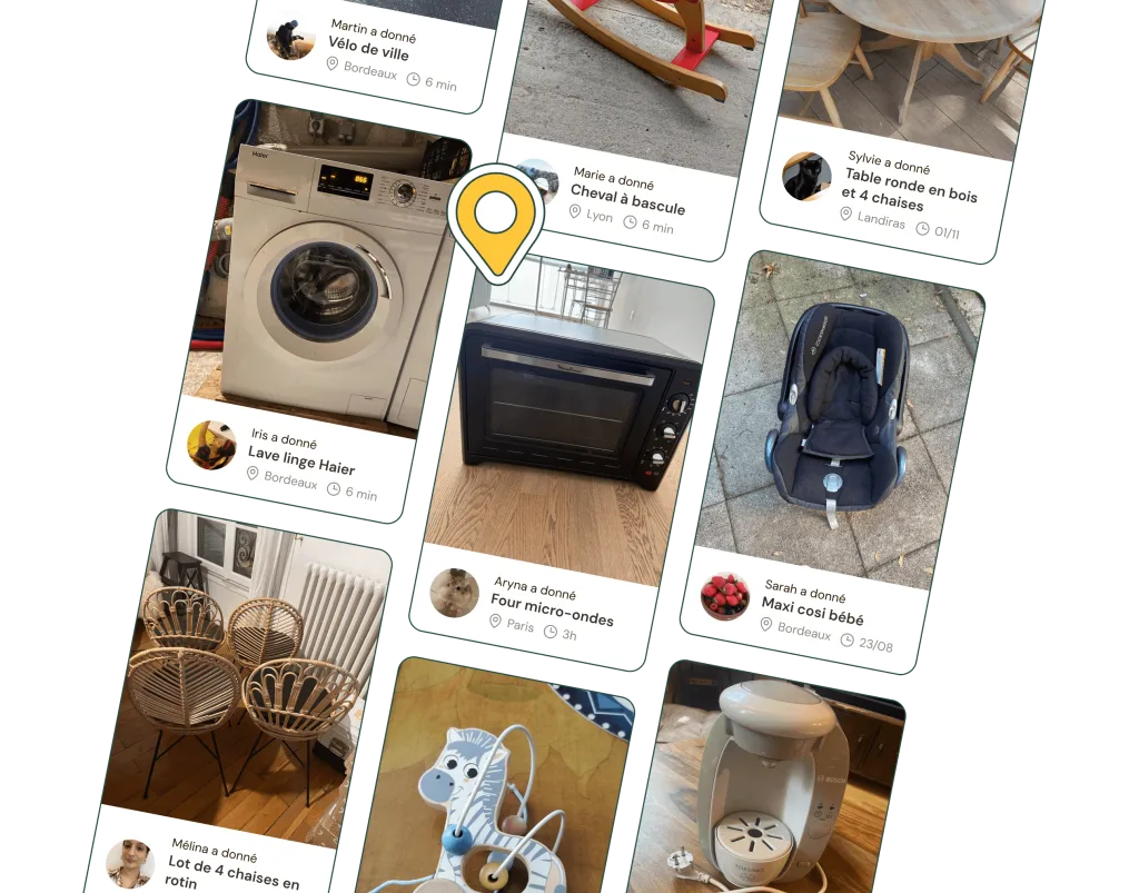 Le site internet et l’application mobile Geev permettent de donner et récupérer gratuitement de la nourriture et des objets inutilisés. Vous cherchez des vêtements de seconde main, des meubles d’occasion, des appareils électroménagers, de la décoration, des livres ou encore des jouets pour enfants ? Sur Geev, vous trouverez des milliers d’annonces d’objets gratuits. C’est une solution utile, locale, éco-responsable et anti-gaspillage qui permet de faire des économies.