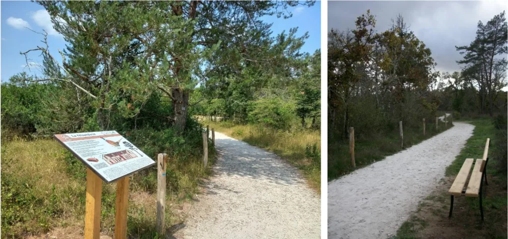 A gauche : Sentier en sable compacté – @M. Parchet – A droite : Platelage en bois – @M. Parchet