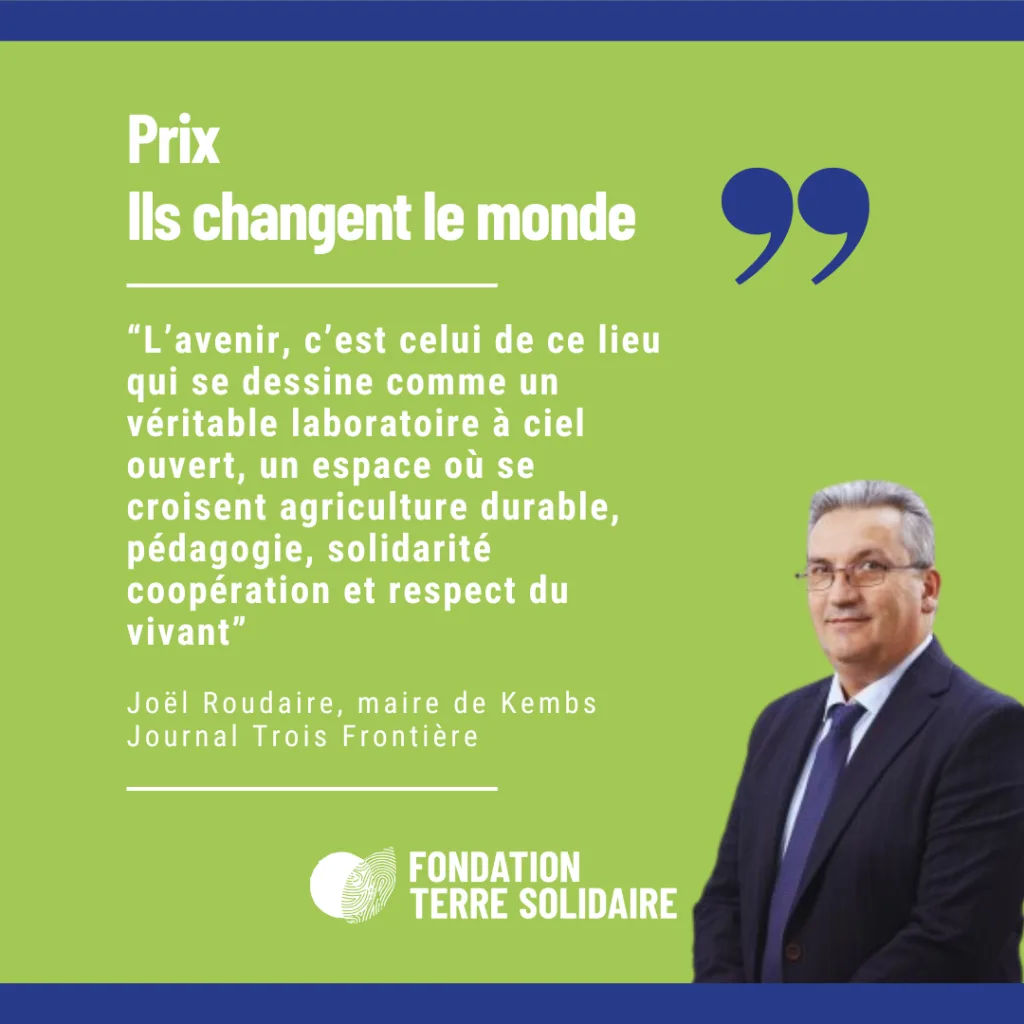 A travers le Prix “Ils changent le monde”, la Fondation met en lumière une initiative locale remarquable qui a le potentiel de montrer des résultats probants, d’inspirer, d’être dupliquée et de contribuer ainsi à changer les choses durablement et ce quel que soit le domaine d’action (agriculture, biodiversité, sobriété énergétique, économie circulaire…).