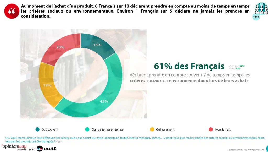 Même sous pression budgétaire, 65% des ménages acceptent un surcoût de 10% pour des articles mieux notés environnementalement.