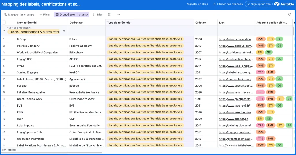 Mapping des labels, certifications et scores RSE et d’impact