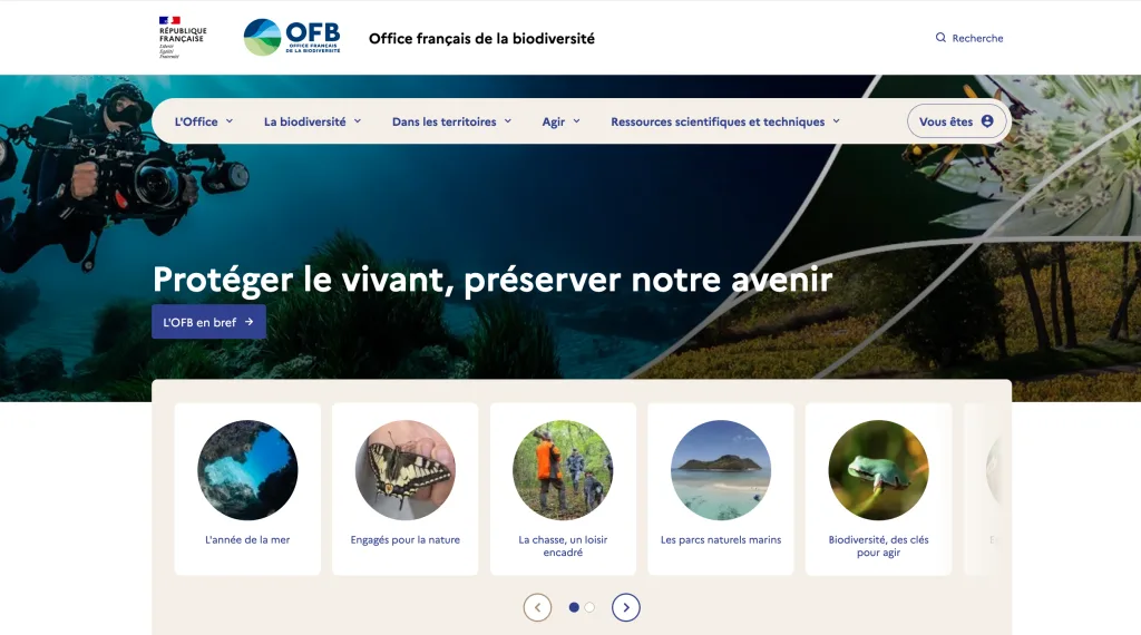 Établissement public de l’État créé le 1er janvier 2020, l’Office français de la biodiversité est placé sous la tutelle des ministres de la Transition écologique et de la Cohésion des territoires, et de l’Agriculture et de la Souveraineté alimentaire. Il a pour missions la surveillance, la préservation, la gestion et la restauration de la biodiversité terrestre, aquatique et marine, ainsi que la gestion équilibrée et durable de l’eau, dans l’Hexagone et en Outre-mer.