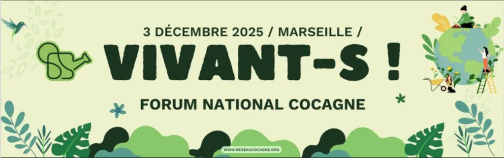 En décembre 2025, le Réseau Cocagne a organisé à Marseille, un forum national dédié au(x) «Vivants !» avec les Jardins de Cocagne locaux (Graines de Soleil, AMS Environnement – Seconde Pousse et Semailles) qui a réuni plus de 350 membres du Réseau Cocagne, partenaires et sympathisant.e.s.