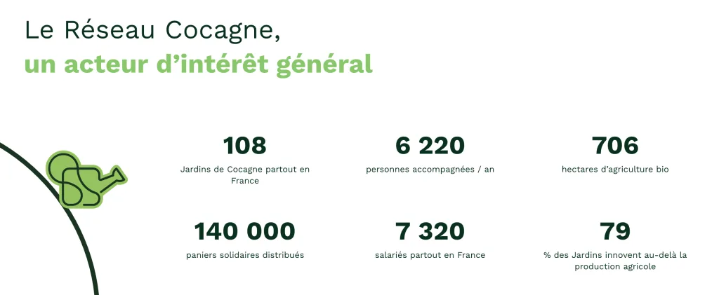 Le Réseau Cocagne est une association loi 1901 qui fédère des associations locales porteuses d’Atelier Chantier d’Insertion (ACI) en maraîchage biologique afin de proposer des parcours d’insertion par l’activité économique (IAE). Celles-ci sont invitées à se réunir tous les deux ans dans le cadre d’un Forum national co-organisé avec un ou des jardins accueillants.