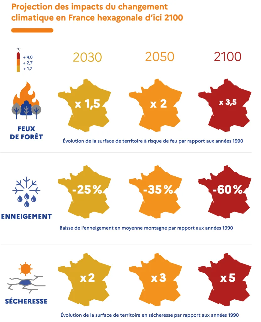 Projection des impacts du changement climatique en France hexagonale d’ici 2100