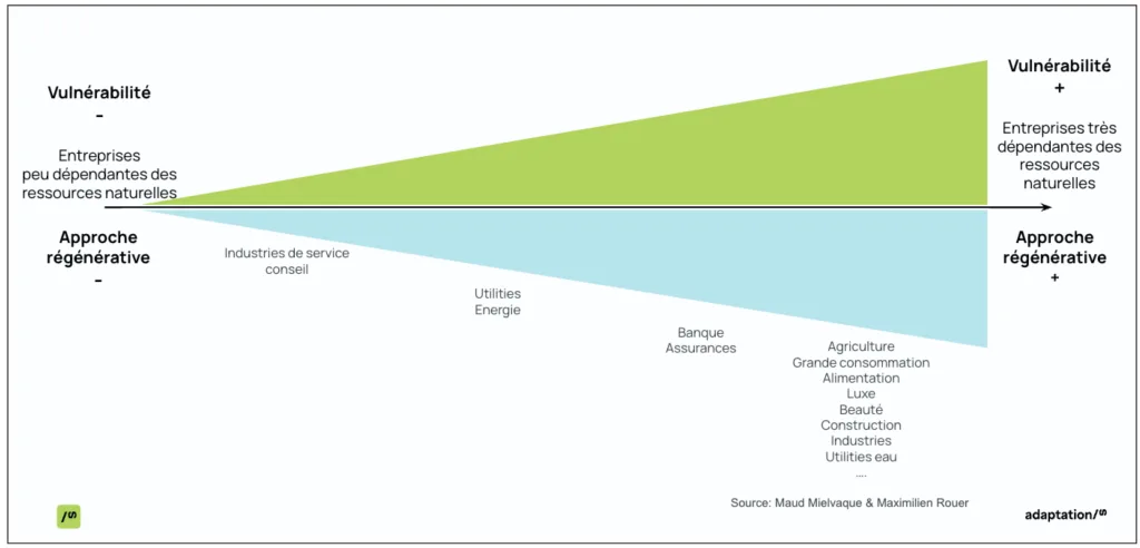 Pour l’instant, l’approche régénératrice est plus facilement intégrée dans les entreprises ayant une forte dépendance au ressources naturelles et dont la vulnérabilité touche directement le ROI des opérations, voire peut engendrer un risque fort d’interruption d’activité.