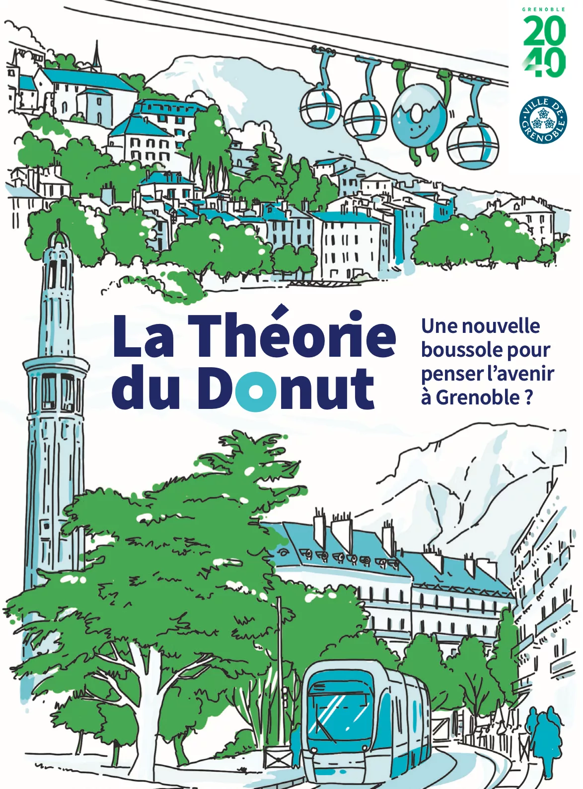 En février 2022, la Ville de Grenoble a choisi de s’appuyer sur la théorie du Donut pour renforcer ses trajectoires de transition et penser le futur de manière transversale. A la croisée des neuf limites planétaires définies par une communauté scientifique internationale et de seize objectifs sociaux, le Donut représente visuellement le double impératif écologique et social qui nous incombe pour permettre à chaque être humain de subvenir à ses besoins fondamentaux dans le respect du vivant et de la planète. Ainsi délimité par un plafond écologique au-delà duquel nous exerçons une pression critique sur le système Terre et un plancher social en dessous duquel nous sommes exposé-es à des privations humaines critiques, se trouve l’espace dit écologiquement sûr et socialement juste pour l’humanité.
