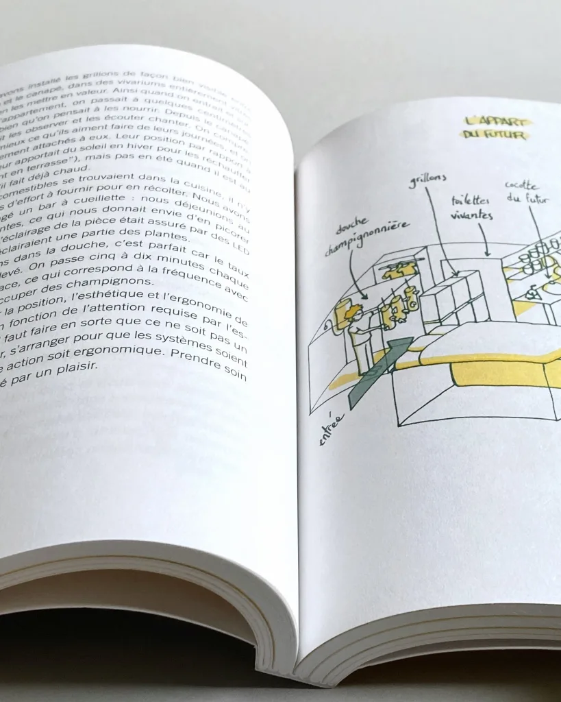Le livre L’Appart du futur – Une aventure low-tech dans la biosphère urbaine (Actes Sud / Arte Éditions) prolonge la série documentaire. Accessible, drôle et foisonnant, il s’adresse à tous ceux qui veulent passer à l’action. « J’ai l’impression de ne pas avoir écrit le livre que je voulais écrire, mais celui que les gens attendaient de moi. Depuis des années, on me demande : « J’adore ce que tu fais, mais comment je peux faire, moi ? » J’ai donc conçu ce livre pour accompagner les gens, leur permettre de piocher des idées, de s’en inspirer. Ce n’est pas un récit, mais un manuel, un outil de curiosité. Tu peux le laisser dans les toilettes et le lire par petits paragraphes (rires). J’ai voulu qu’il donne envie d’expérimenter les low-tech, de montrer qu’on peut faire soi-même ».