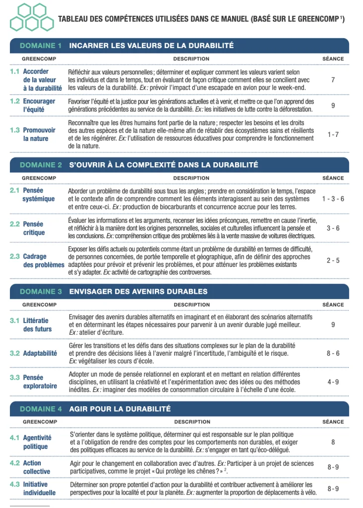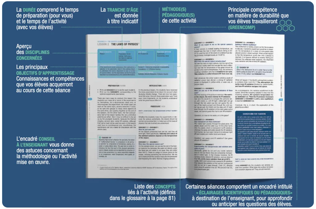 » Le manuel s’appuie sur une pédagogie d’investigation et de projet, combinant jeux de rôle, expériences, activités numériques et animations multimédias. Il vise à développer la pensée systémique, l’analyse critique et la capacité d’action des élèves, tout en intégrant les dimensions émotionnelles et sociales du sujet.