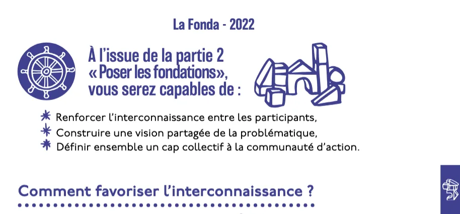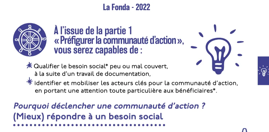 Son objectif est d’outiller les acteurs associatifs, mais aussi leurs partenaires, dans la création de communautés d’action. Ces dernières ne se font pas en un jour : elles sont le fruit d’une construction longue, patiente et méticuleuse, avec des succès et des échecs.