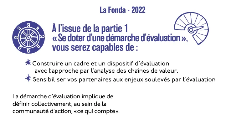 La co-construction d’un cadre et d’un dispositif d’évaluation9 est une étape importante dans la structuration d’une communauté d’action : elle permet de s’assurer que les membres ont bien une vision partagée des objectifs qu’ils veulent atteindre ensemble. C’est aussi un véritable outil de pilotage, la démarche d’évaluation permettant de s’assurer de leur atteinte. Elle permet ainsi de mesurer les progrès comme les effets de l’action collective.