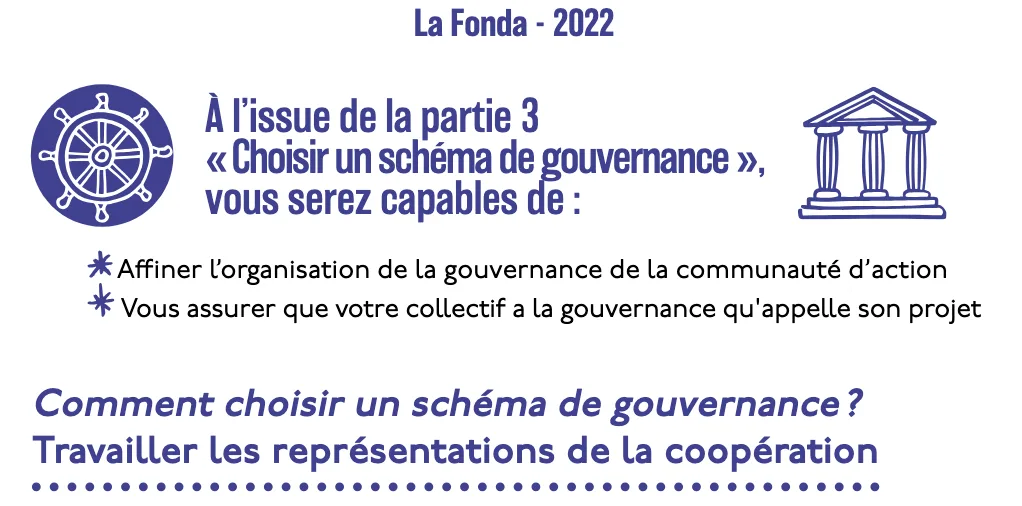 - — De choisir un schéma de gouvernance. En formalisant les engagements de chaque partie prenante, le schéma de gouvernance aligne le fonctionnement de la communauté d’action sur ses valeurs et ses objectifs.