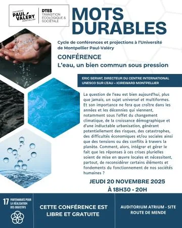 L’eau, un bien commun sous pression : Le Jeudi 20 novembre 2025 à l’Atrium de Montpellier