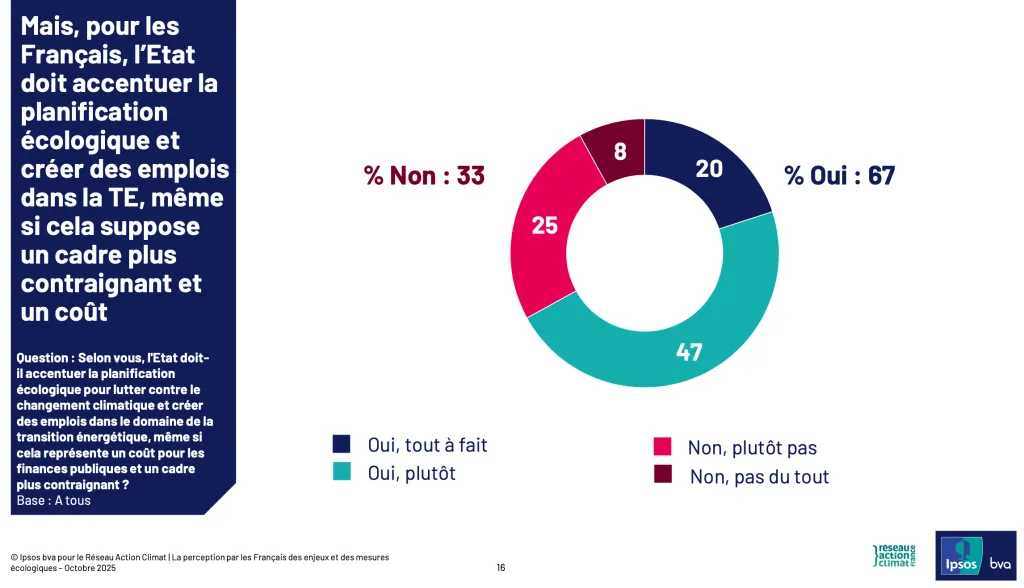 Pour les Français, l’État doit accentuer la planification écologique et créer des emplois dans la TE, même si cela suppose un cadre plus contraignant et un coût