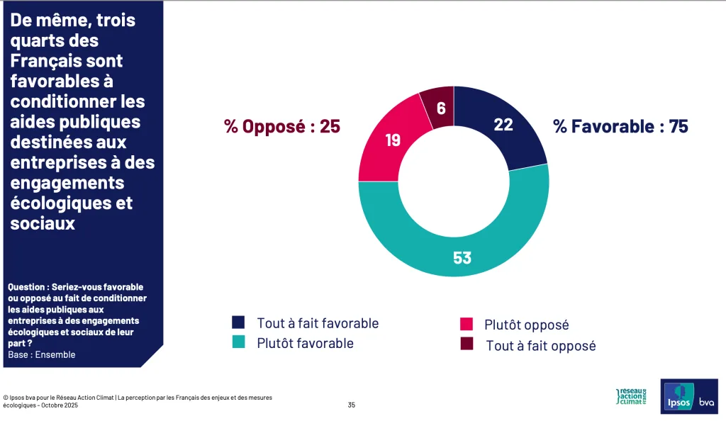 3/4 des Français sont favorables à conditionner les aides publiques destinées aux entreprises à des engagements écologiques et sociaux