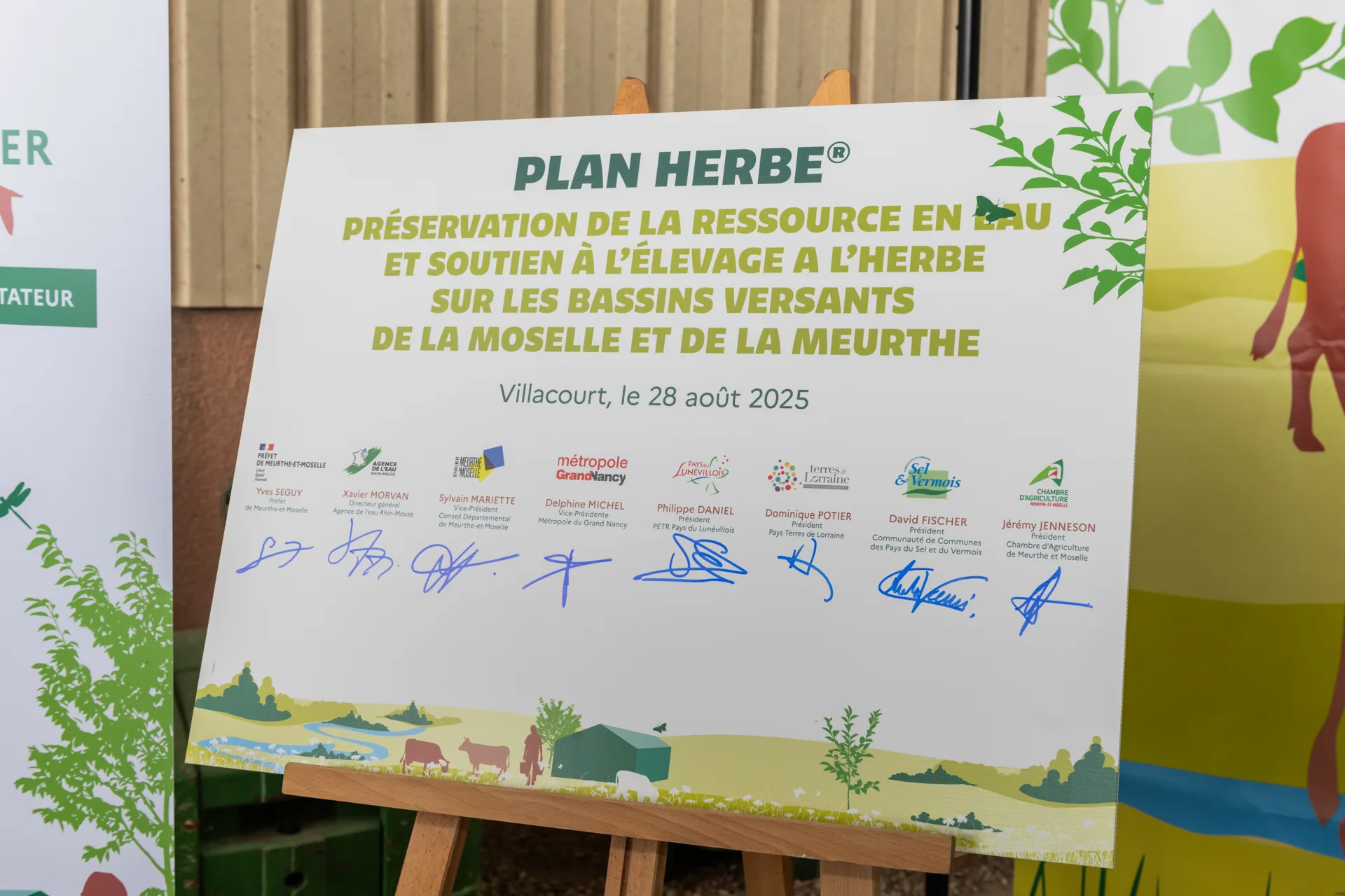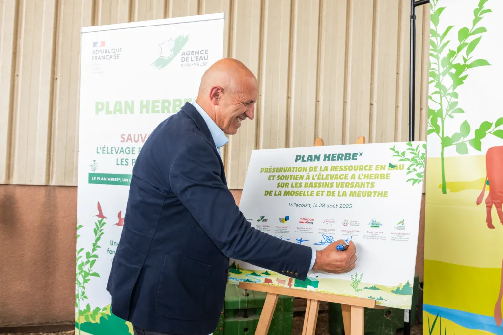 Xavier MORVAN, Directeur général de l’Agence de l’eau Rhin Meuse : « Le succès des plans Herbe® confirme la pertinence de cette approche collective, qui séduit de plus en plus de territoires et d’acteurs agricoles. Avec 3 nouveaux projets signés depuis juillet, la dynamique s’accélère : de nombreux plans sont déjà en cours de co-construction, preuve que cette approche répond à de vrais besoins sur le terrain. 6 nouvelles signatures sont attendues dans les 18 prochains mois, pour transformer durablement les pratiques agricoles et protéger l’eau, la biodiversité et nos territoires ruraux. »