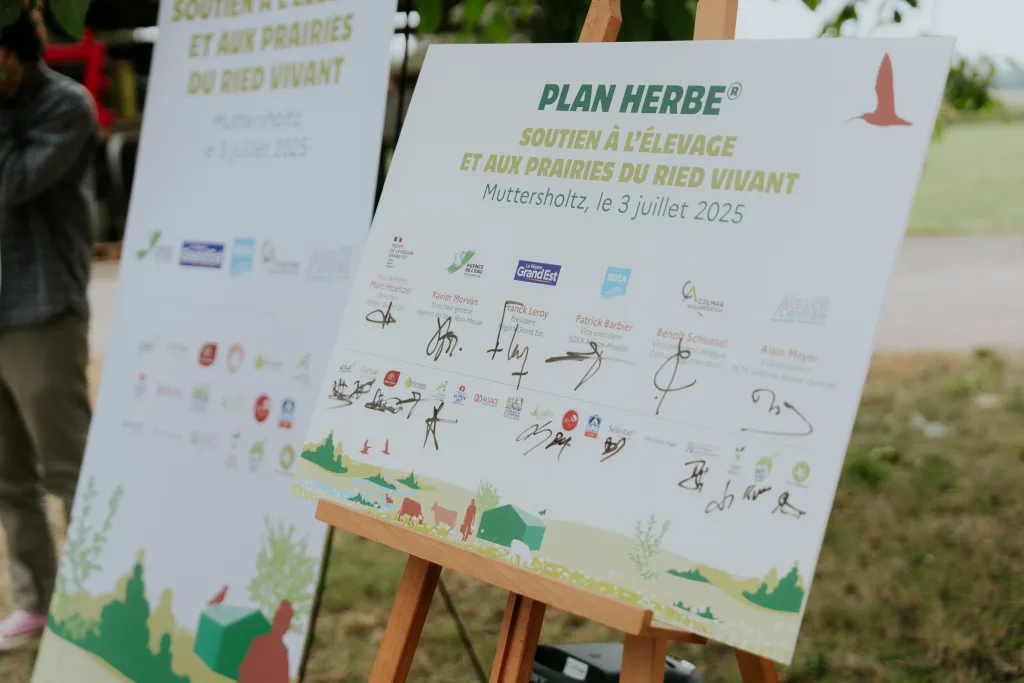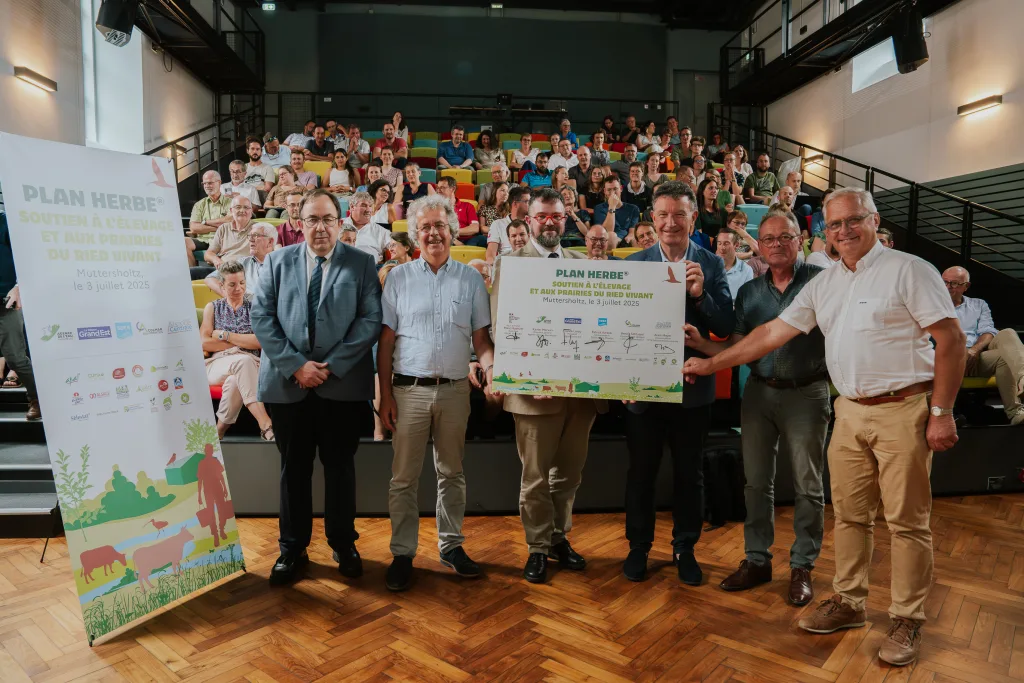 - Le plan Herbe® Ried Vivant signé le 3 juillet dernier, accompagne les communes dans l’extension de leur Trame verte et bleue, la mise en œuvre d’une méthodologie d’attribution du foncier communal et le développement de sites expérimentaux pour le pâturage écologique. Une démarche qui renforce à la fois la biodiversité locale et la résilience des exploitations.
