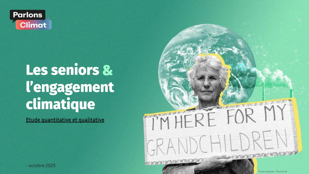 Qui sont les seniors et comment vivent-ils en France en 2025 ? Quel est leur niveau de connaissances et d’implication vis-à-vis des enjeux climatiques et environnementaux ? Existe-t-il une “génération climat”, jeune et engagée, et des seniors en retrait ? Que retenir des seniors déjà engagés en France et ailleurs pour penser leur place dans la mobilisation ? Les réponses dans les résultats de l’étude Parlons Climat sur Les seniors & l’engagement climatique publiée en Octobre 2025.
