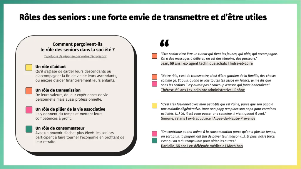 - Les seniors sont très actifs dans la vie politique et locale, avec une forte propension à voter et à être en lien avec les autres (voisins, bénévolat).