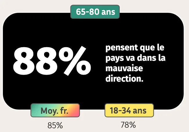 Les seniors sont inquiets de l’effritement de la cohésion sociale et nationale, ainsi que de la situation économique et politique de la France.