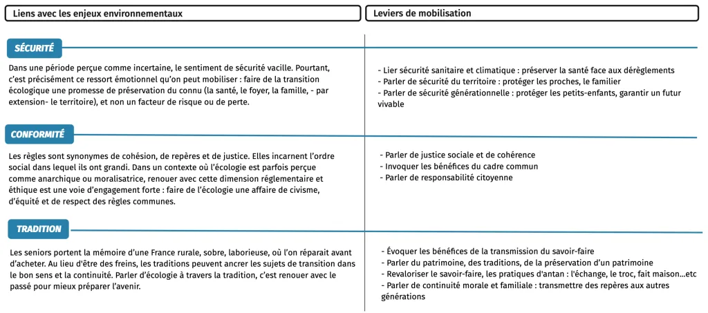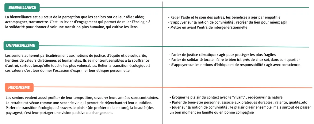 A noter que cette vision des solutions, très portée sur les petits gestes, n’est pas spécifique aux seniors mais à tous les individus non engagés/sensibles au sujet