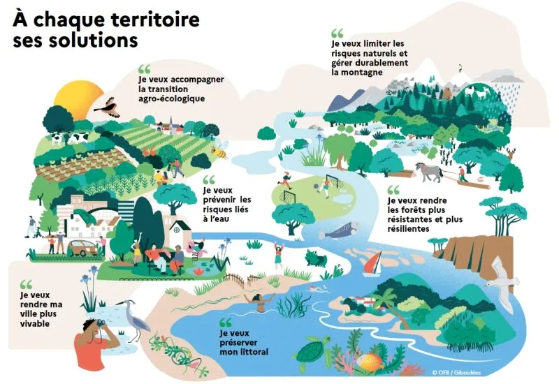 • ii) renforcer la gouvernance de la mise en œuvre des projets de solutions fondées sur la nature (SfN), pour une plus grande solidarité entre les parties amont et aval des bassins versants (lors de la prévention des risques naturels liés à l’eau), ou à plus grande échelle pour les questions relatives à la biodiversité ;