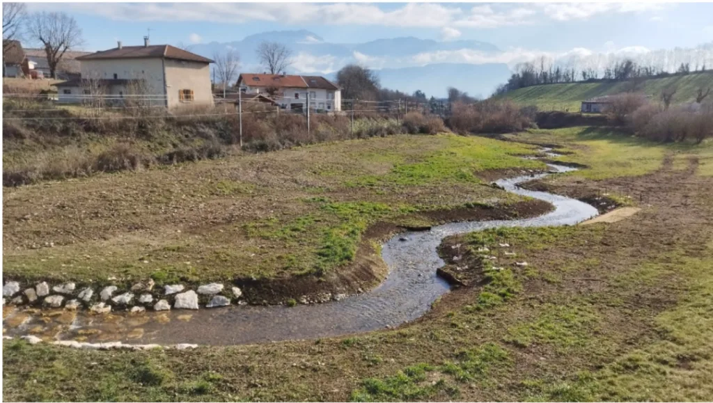 Exemple : restauration d’une rivière canalisée dans un cours d’eau à méandres