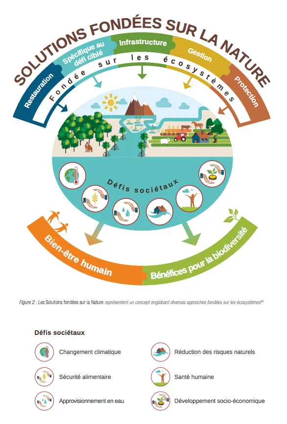 Il s’agit d‘actions intégrant des caractéristiques et des processus naturels dans des projets appliqués afin d’assurer leur développement durable. Le concept de SfN a été défini à la fin des années 2000, à l’échelle mondiale, par des institutions telles que l’Union internationale pour la conservation de la nature (UICN) et, plus récemment, la Commission européenne (CE).
