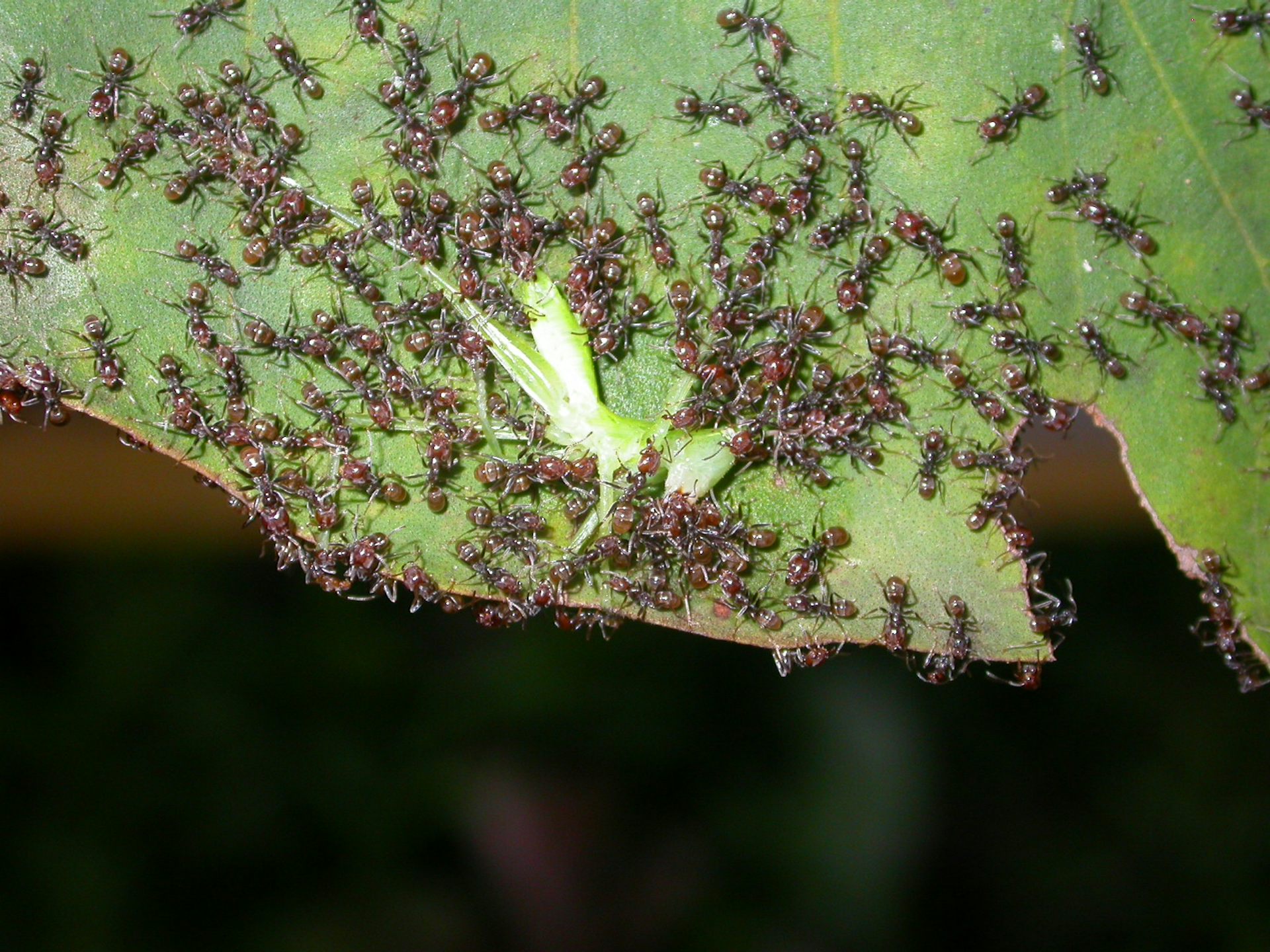 Les ouvrières patrouillent ainsi sur l’ensemble du feuillage et des branches des plantes. Agressives et prédatrices, les fourmis expulsent ou capturent les herbivores, assurant ainsi la protection de la plante. Le coût que représente la production de nectar pour la plante est ainsi compensé par le bénéfice qu’elle retire de cette défense par procuration.
