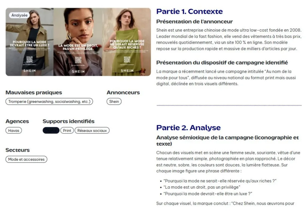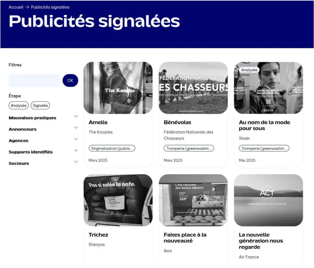 l’OCP permet à chaque citoyen de signaler, par un formulaire simple, une publicité qu’il considère abusive en raison d’un discours incitant à la surconsommation, trompeur sur le plan écologique et social ou véhiculant des stéréotypes dégradants.