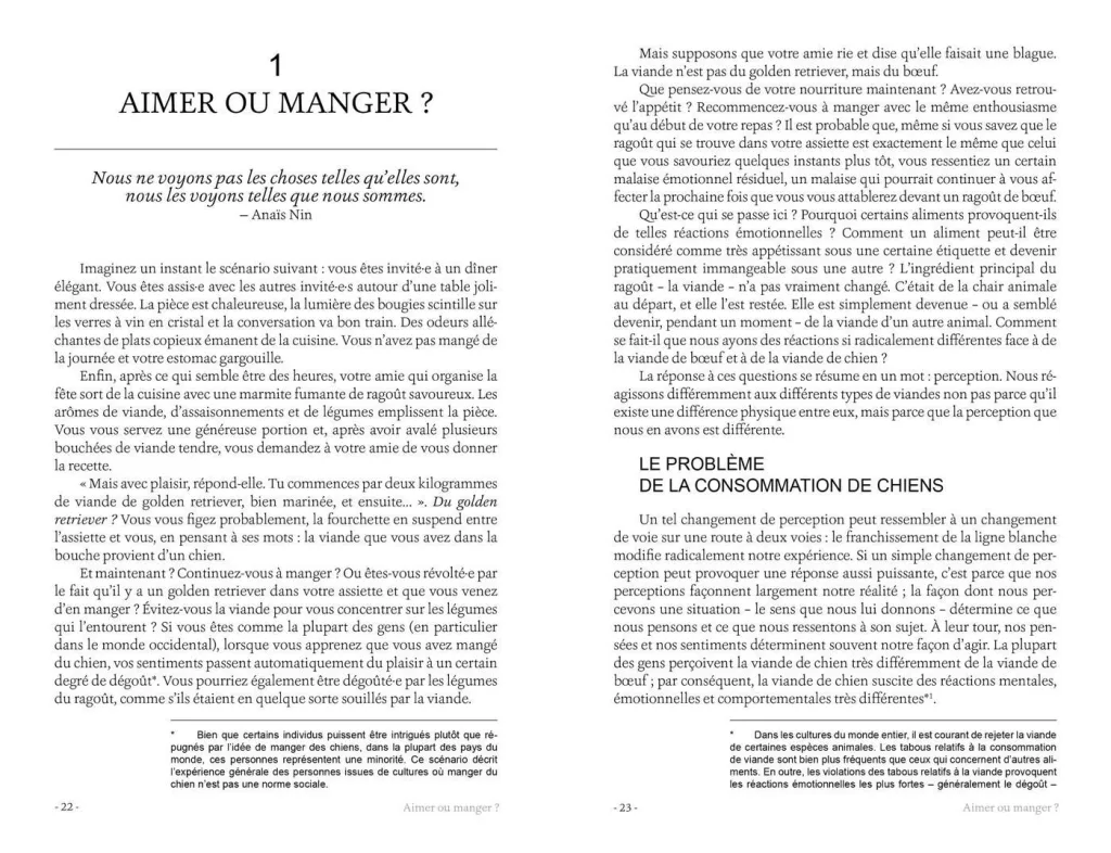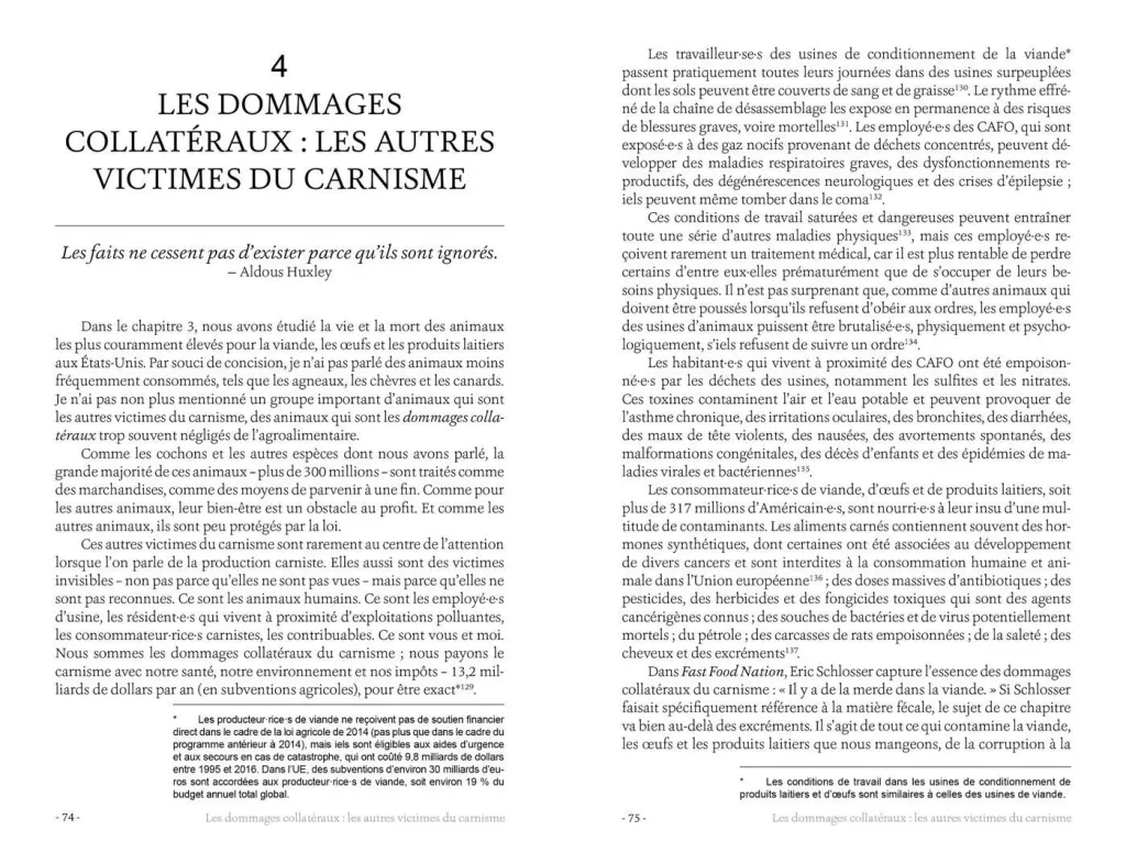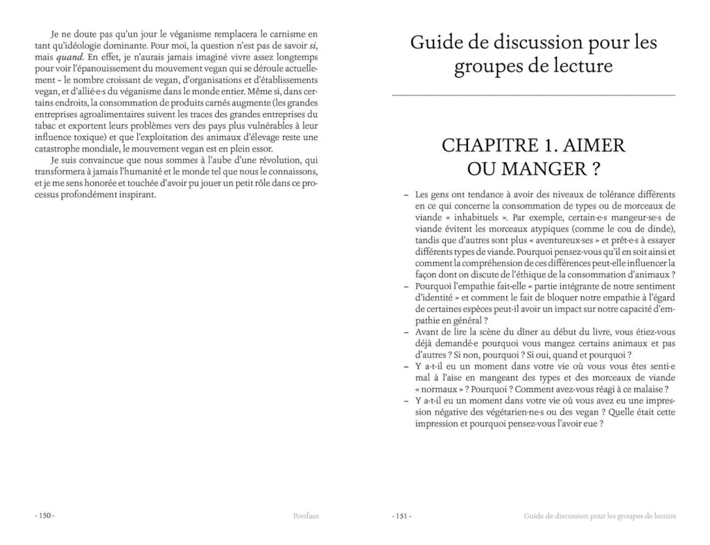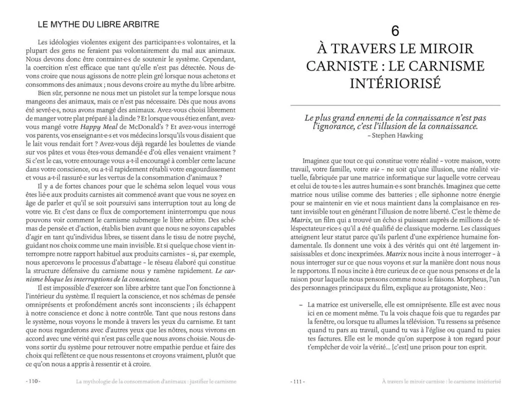 L’ensemble constitue un plaidoyer édifiant contre le carnisme, en même temps qu’une ressource précieuse pour épurer nos habitudes alimentaires de nos dissonances cognitives, et ainsi vivre en conformité avec nos principes éthiques.